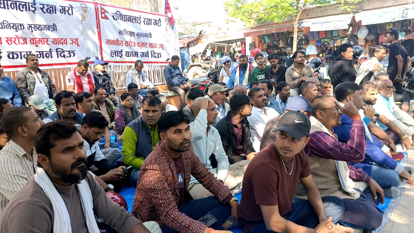 ७ दललाई एमालेकाे काउण्टर : मुख्यमन्त्रीलाई काम गर्न देउ भनी धर्ना